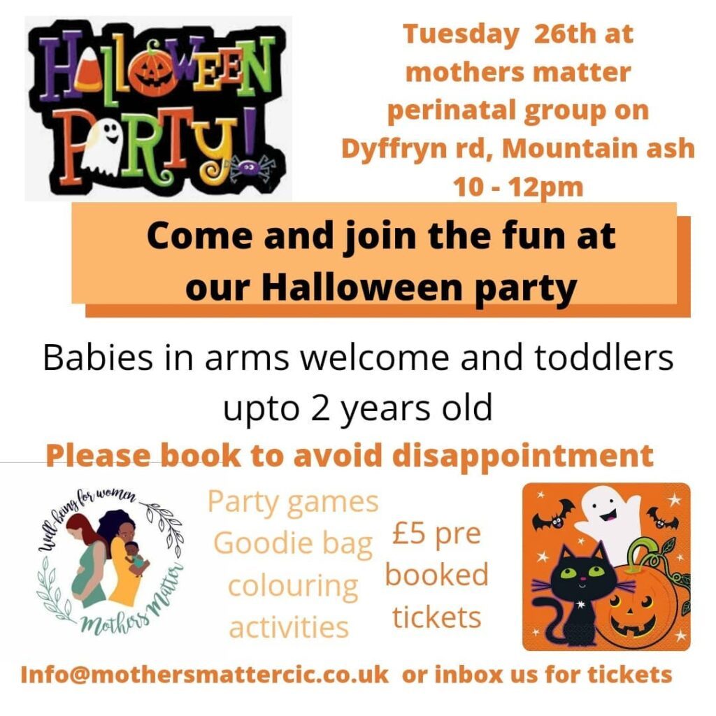 Mothers matter are having a Halloween party for mums with babies in arms and toddlers upto 2 years.