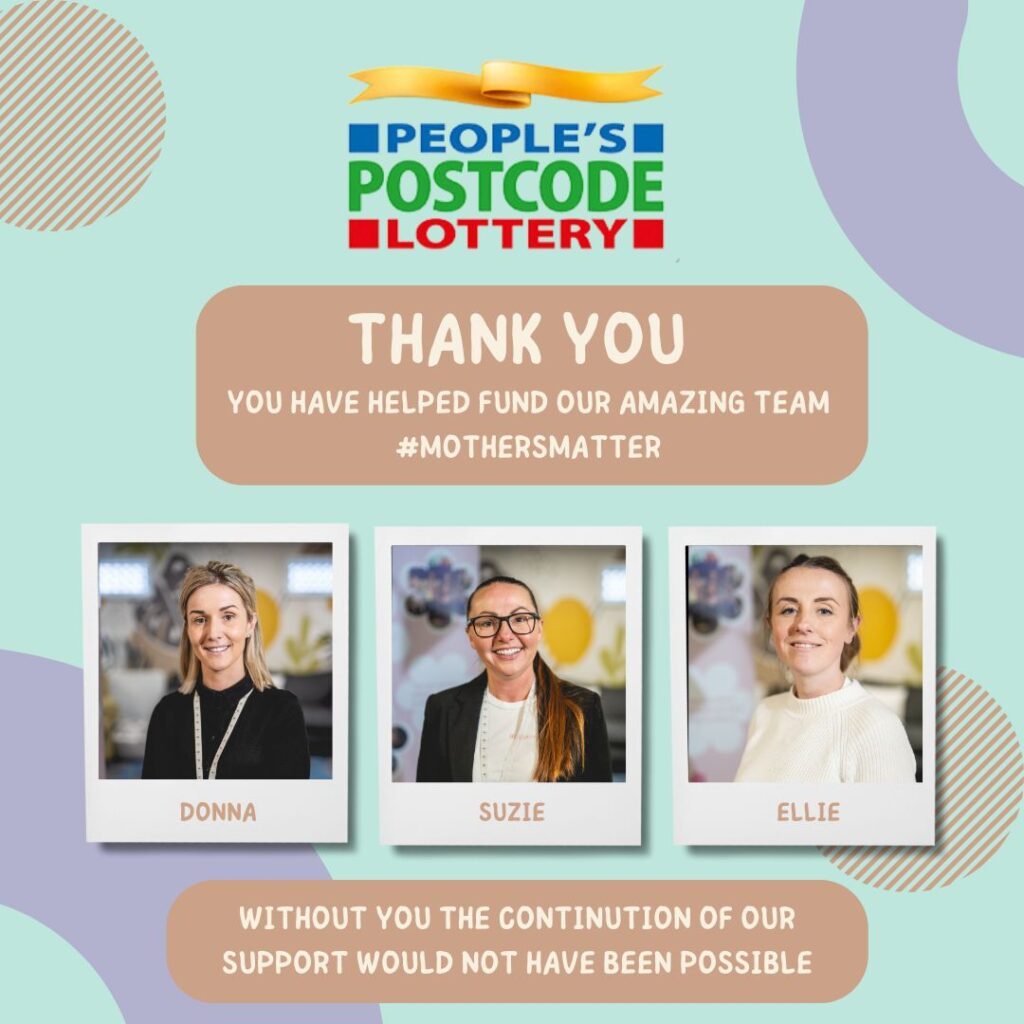 We want to give a massive shout out to The Peoples Postcode Lottery. The funding we were awarded recently has gone towards funding our amazing team who assist in running our groups and supporting our mums in one-to-one work.